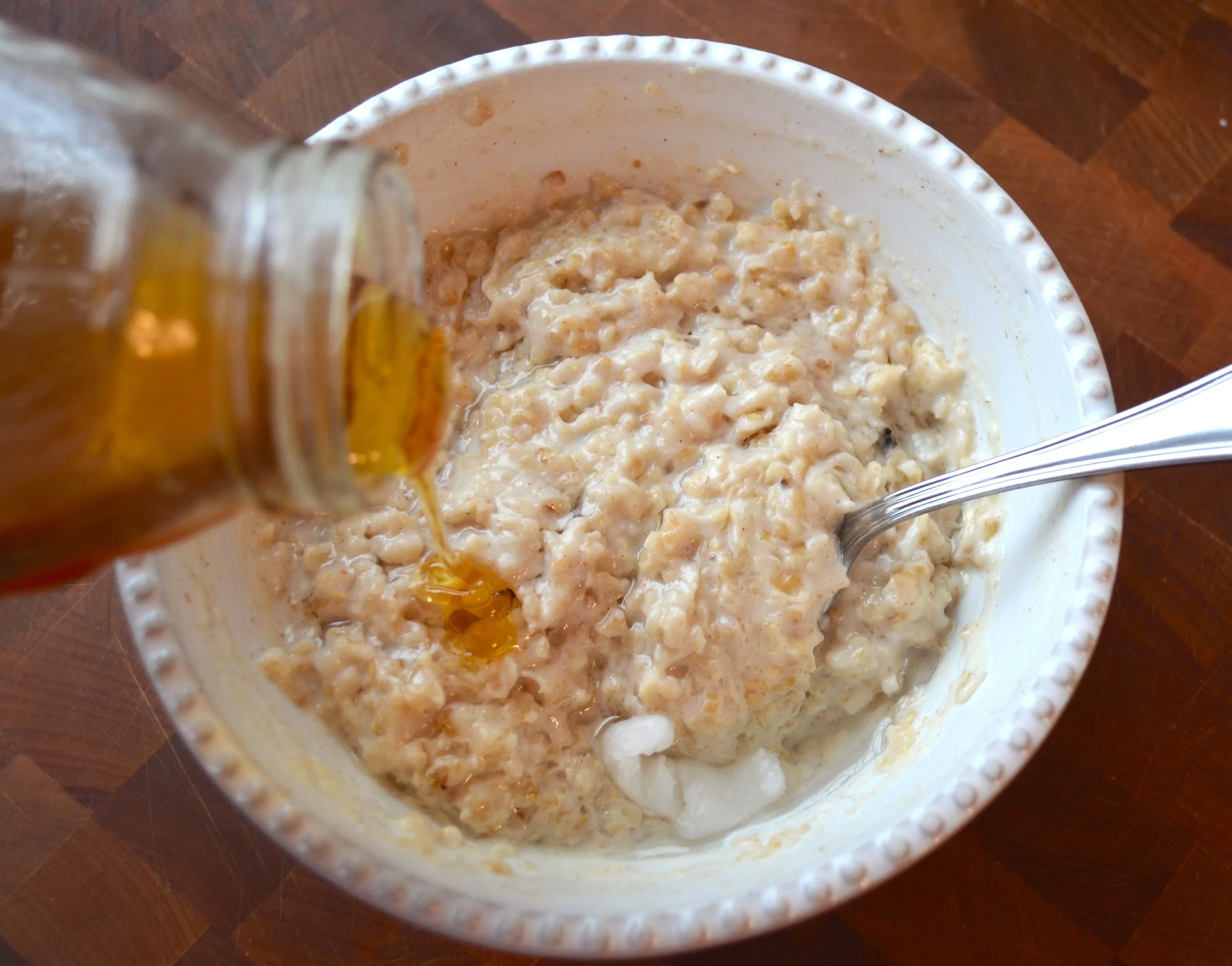 My go to breakfast when I need to get everything cooked and on the table with minimal pots, pans, and prep time? Oatmeal. I love oatmeal. Like, really love it. Needless to say Austin does, too. Here’s what I do.