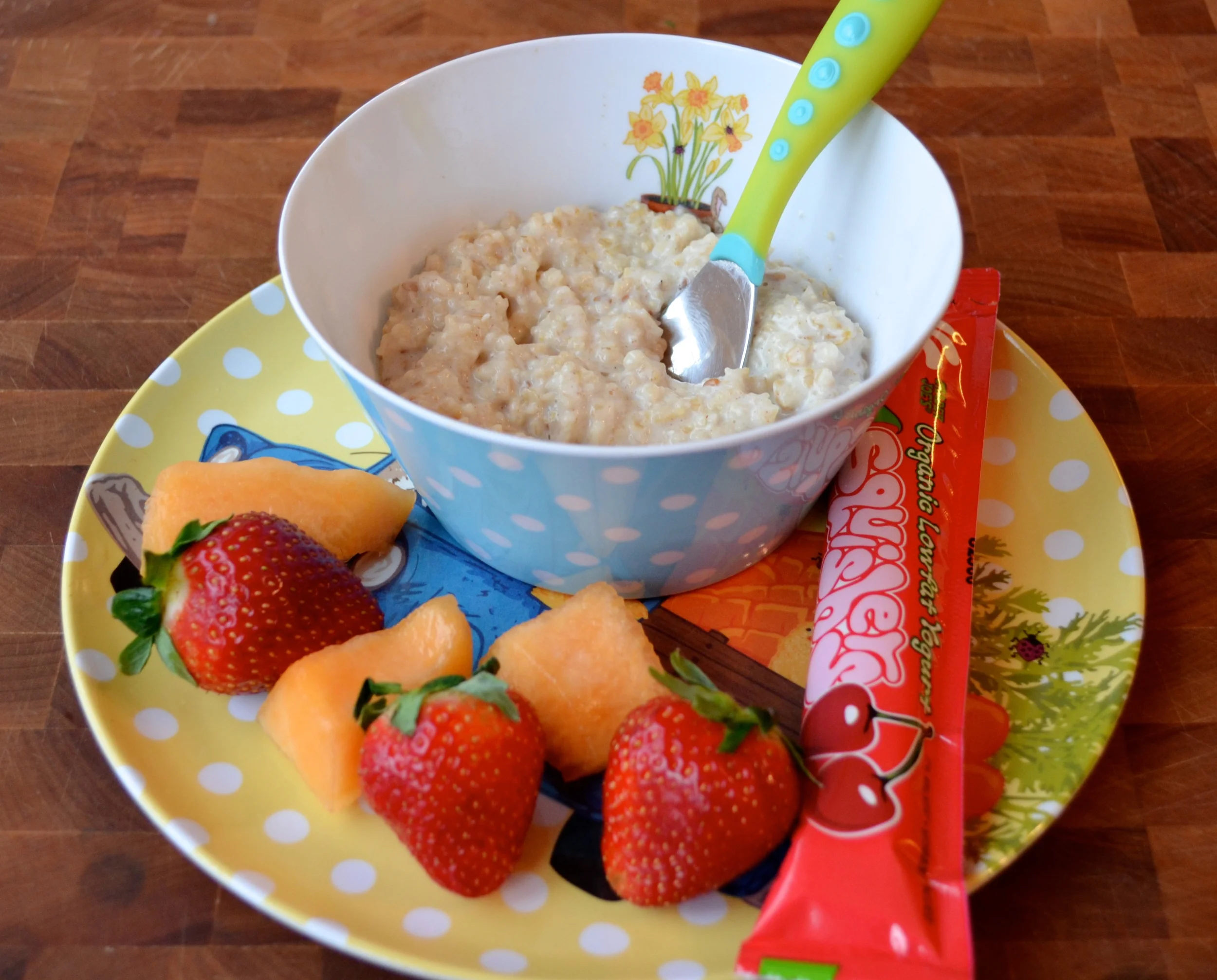 My first hack: one-minute oats. They are the same as their longer-cooking counterparts, just ground into smaller bits. Next, because I hate scrubbing pots first thing in the morning (or anytime, at all), I use the microwave. Use water, almond milk, or cow’s milk, depending on your preference. My scrawny tot gets whole milk, and I’ll tell you, the taste can’t be beat.