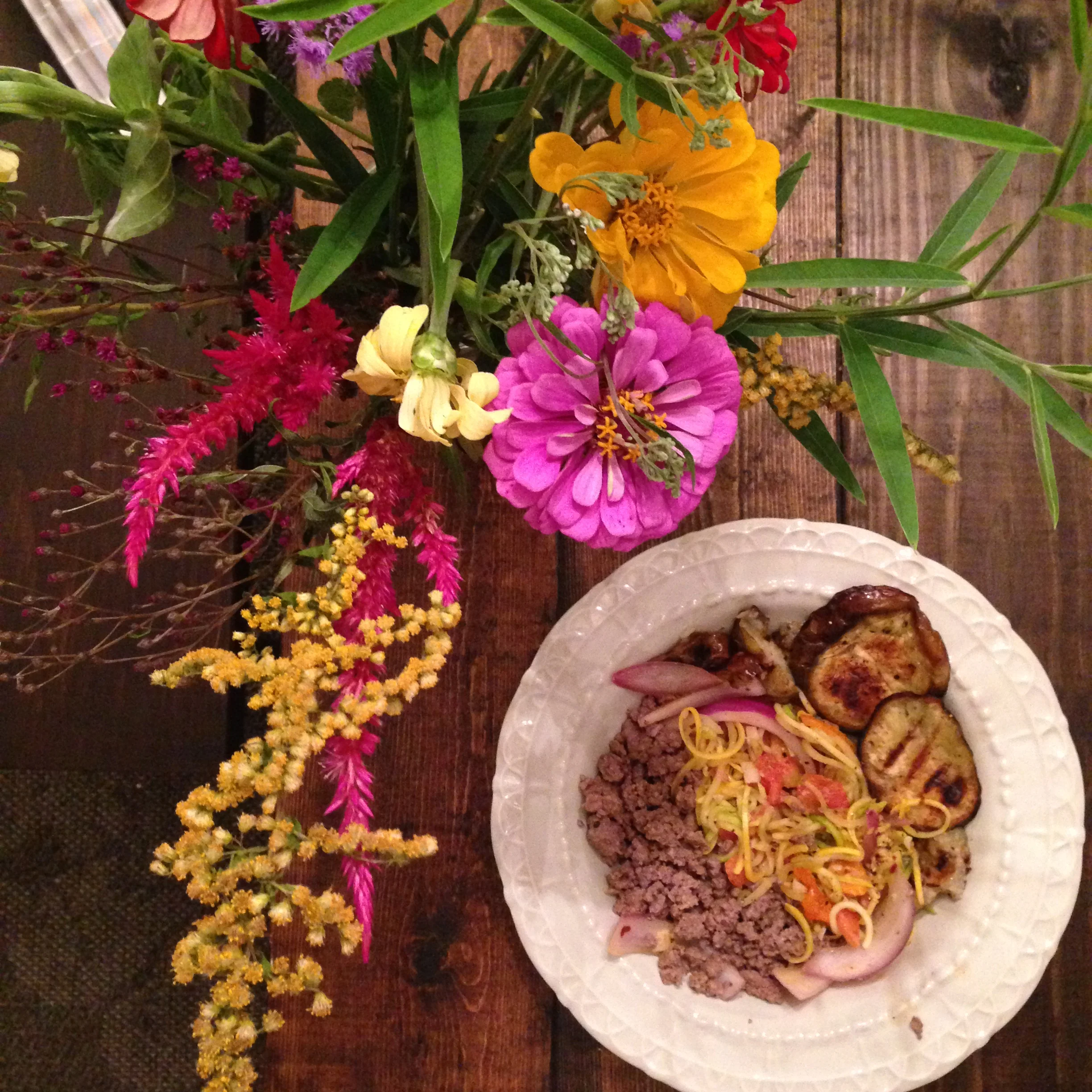 The Hepzibah Flower CSA + my poorly photographed veggie box meal.