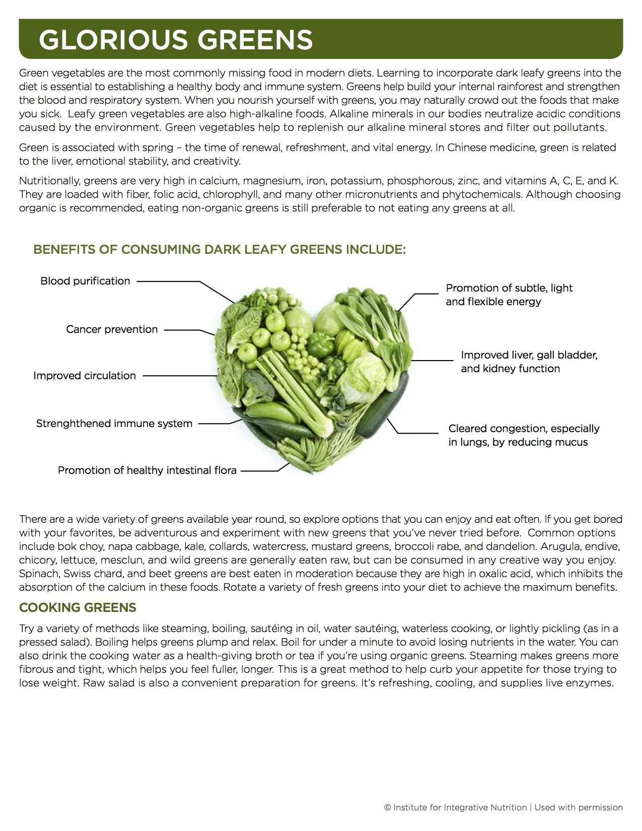 Of course, you can certainly cook your greens too! Check out this great graphic from The Institute of Integrative Nutrition on Glorious Greens for further motivation!